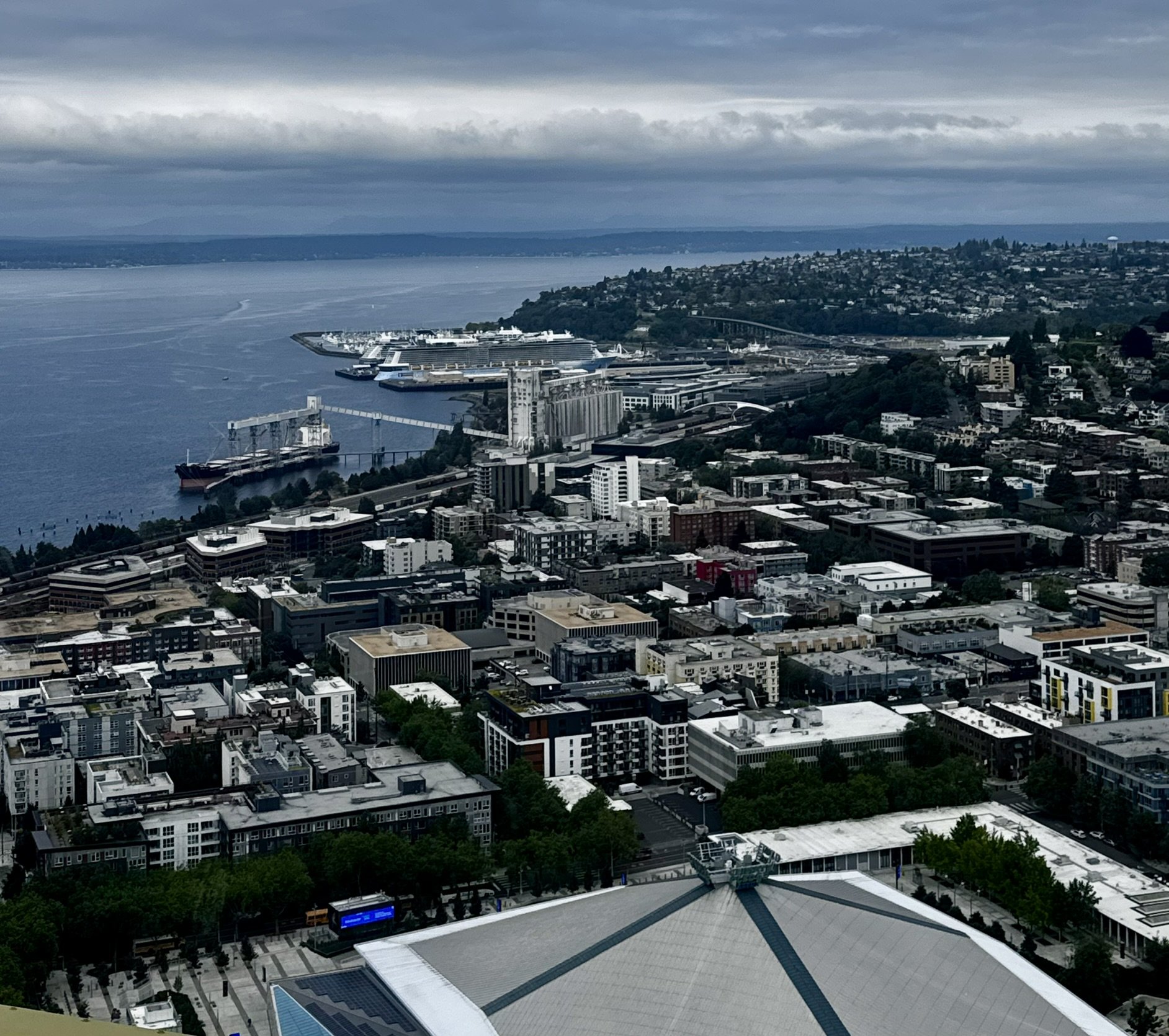 Looking down from the Space Needle to the cruise port.