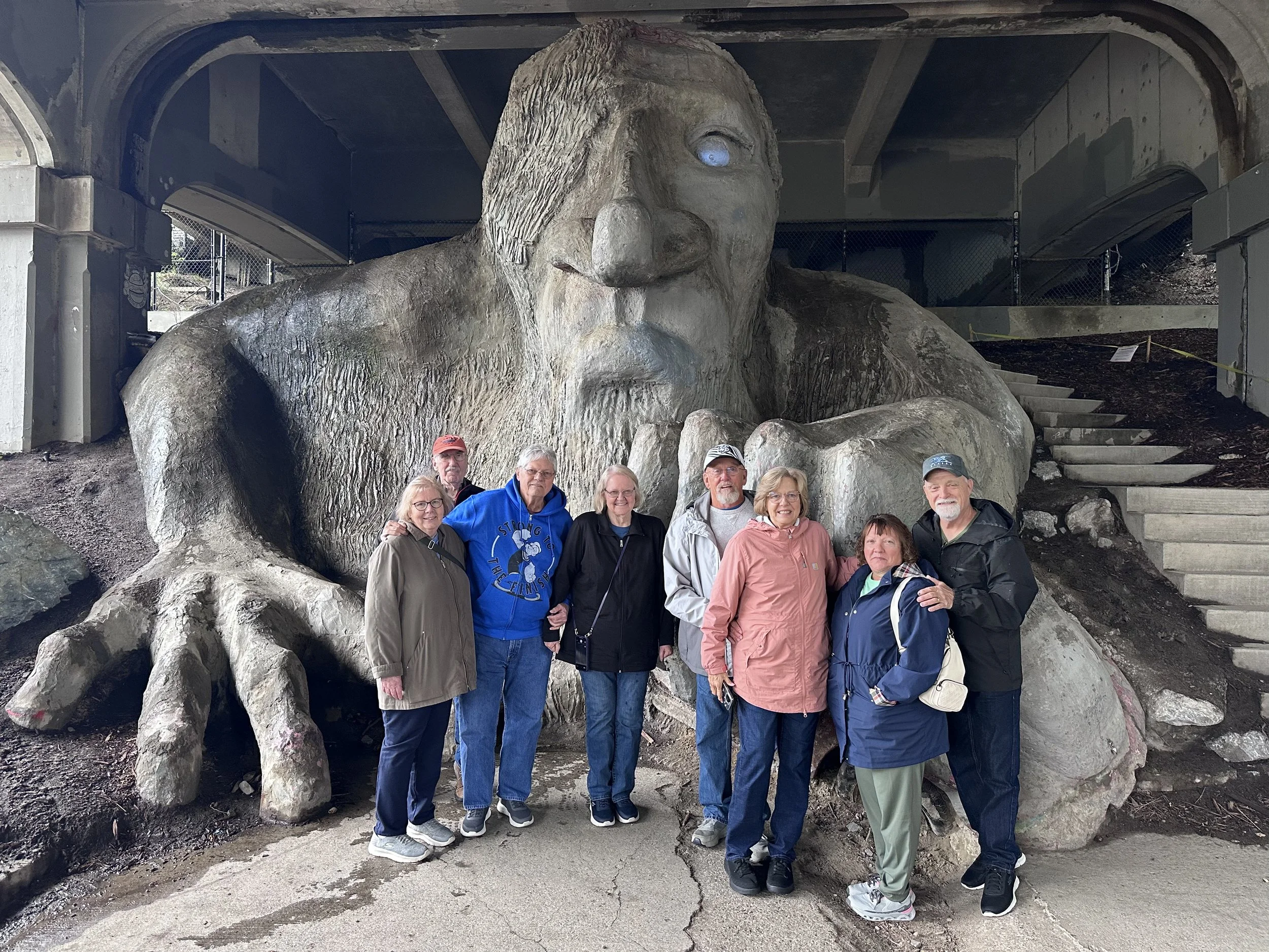 Right after our tour, the skies opened up and the rain came down hard — a true Alaska welcome. Thankfully, our planned stop at the whale fountain statues gave us a relaxed way to enjoy the city despite the weather.