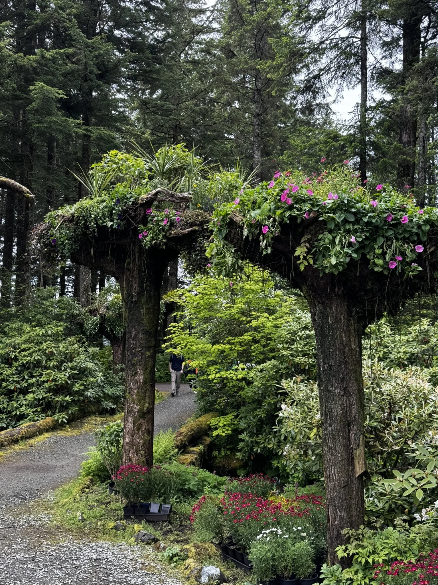 The famous Flower Towers at Glacier Gardens — one of Juneau’s quirkiest sights.