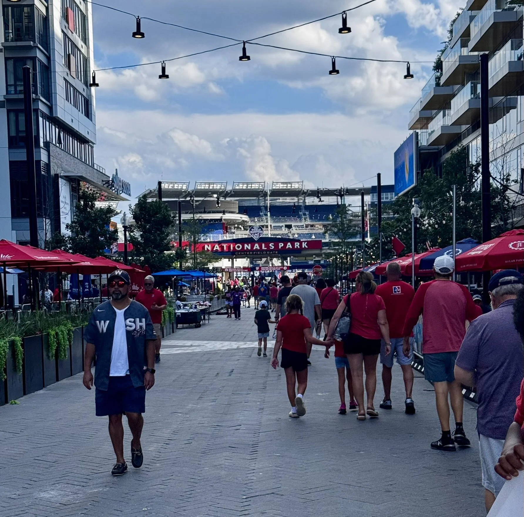 Walking toward Nationals Park on game day — fans filling the streets and the energy building before first pitch.